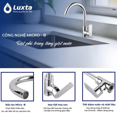 CÔNG NGHỆ MICRO – BĐỘT PHÁ TRONG TỪNG DÒNG NƯỚC Làm sạch mạnh mẽ mà vẫn êm ái, hạn chế bắn lên thành chậu. Chất liệu đồng thau nguyên khối, mạ Chrome...